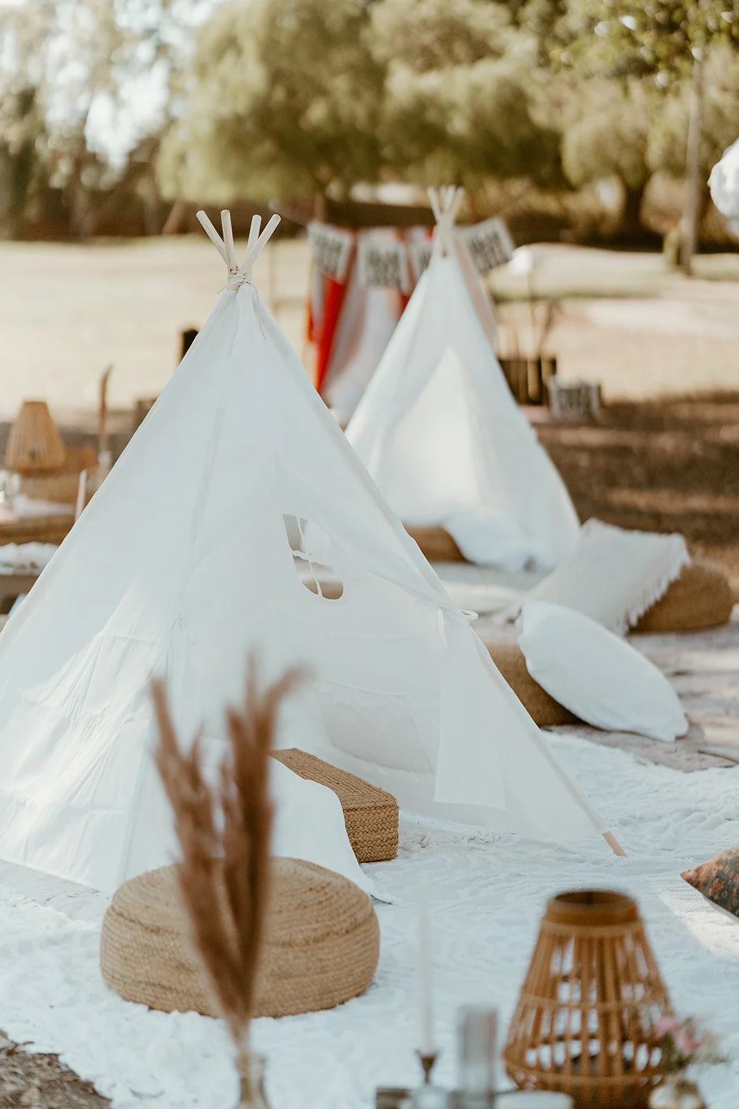 These teepees add such a cute aesthetic to your event and come equipped with everything you need. This includes 1 Teepee, 1 Soft white 10×10 blanket, 1 pillow, 1 square pouf. Each Teepee is available for $60!