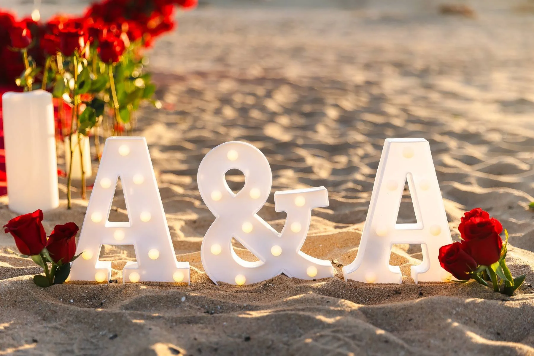 You can personalize with you and your partner’s initials, "Happy Birthday," "Congrats," you and your partner’s initials, or any message you like! Each letter or character is $10. We also have numbers available.