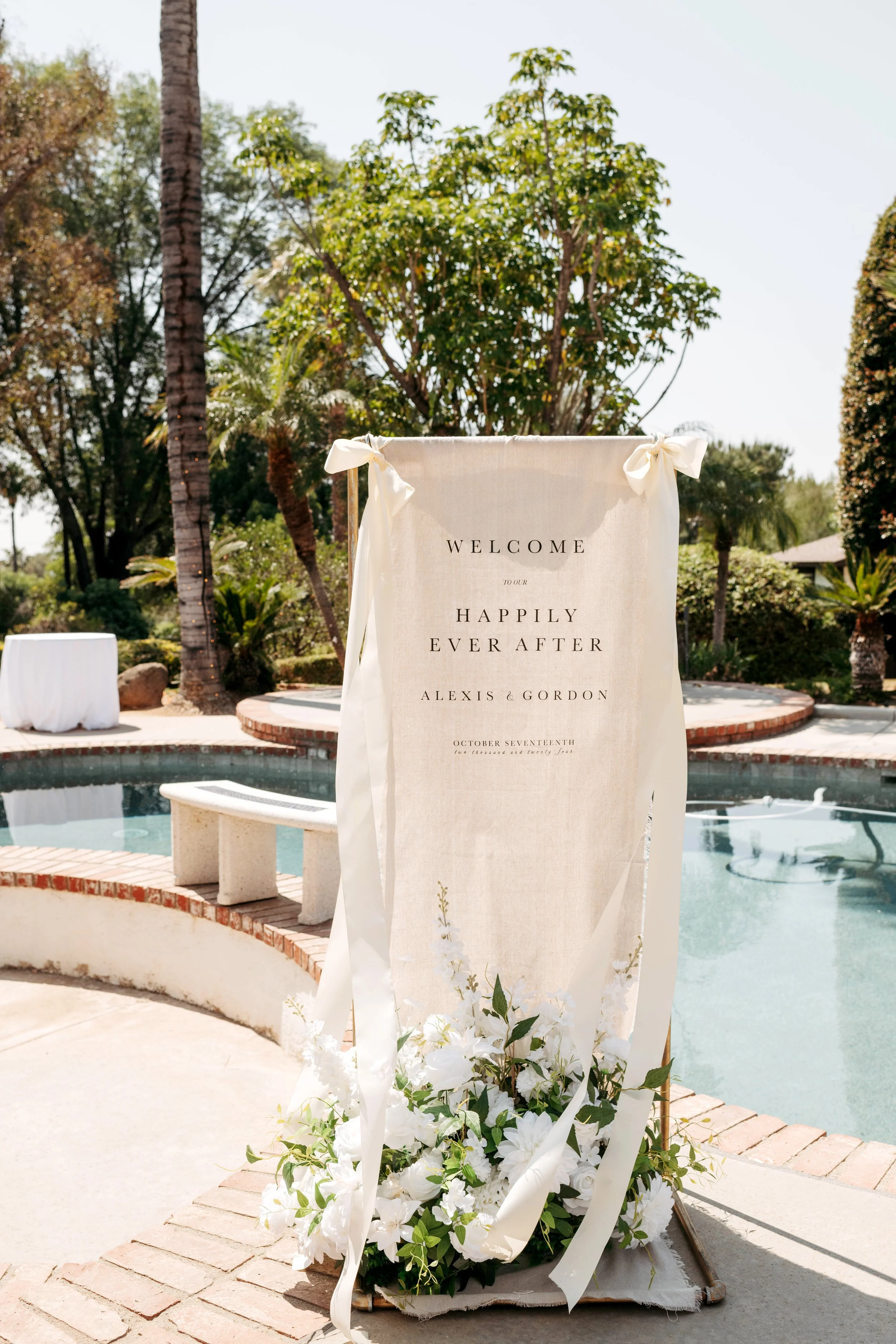 This welcome sign can be fully customized to suit your event with any verbiage, making it a perfect addition for weddings, corporate events, birthdays, and more. It features a stylish 6ft tall golden metal frame, and you’ll even get to keep the sign as a cherished keepsake after your event! This is available to add for $260.