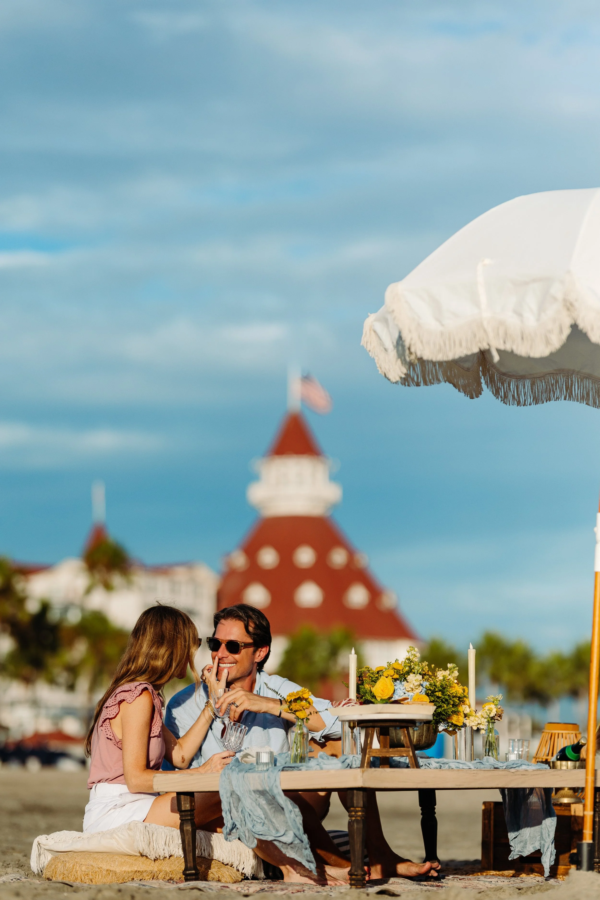 While our luxury picnics are at the heart of what we do, we also create personalized proposals that make life’s most meaningful moments unforgettable. Whether it’s a sunset picnic on the sand or a private setup near the Hotel Del Coronado, our team brings your vision to life with creativity and care.