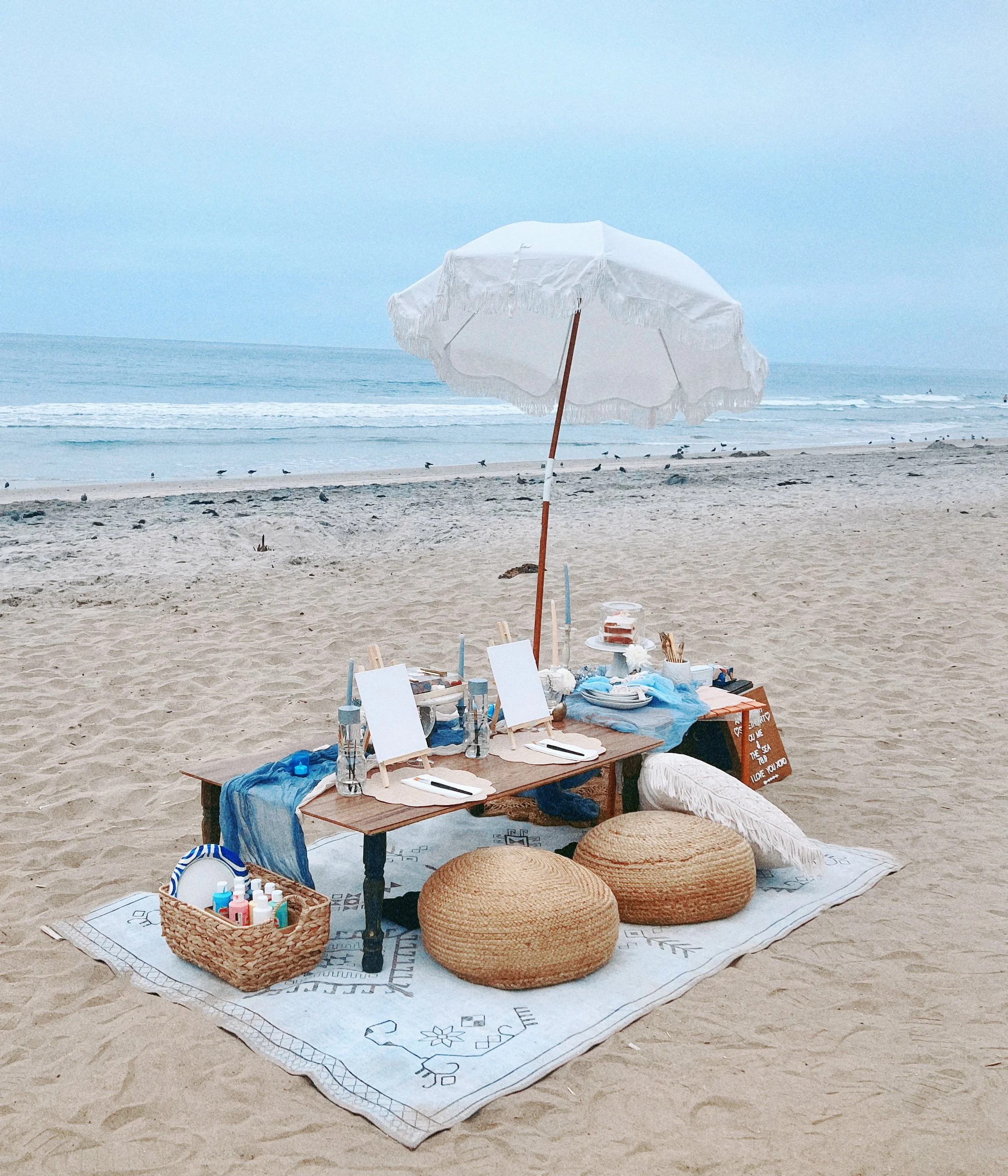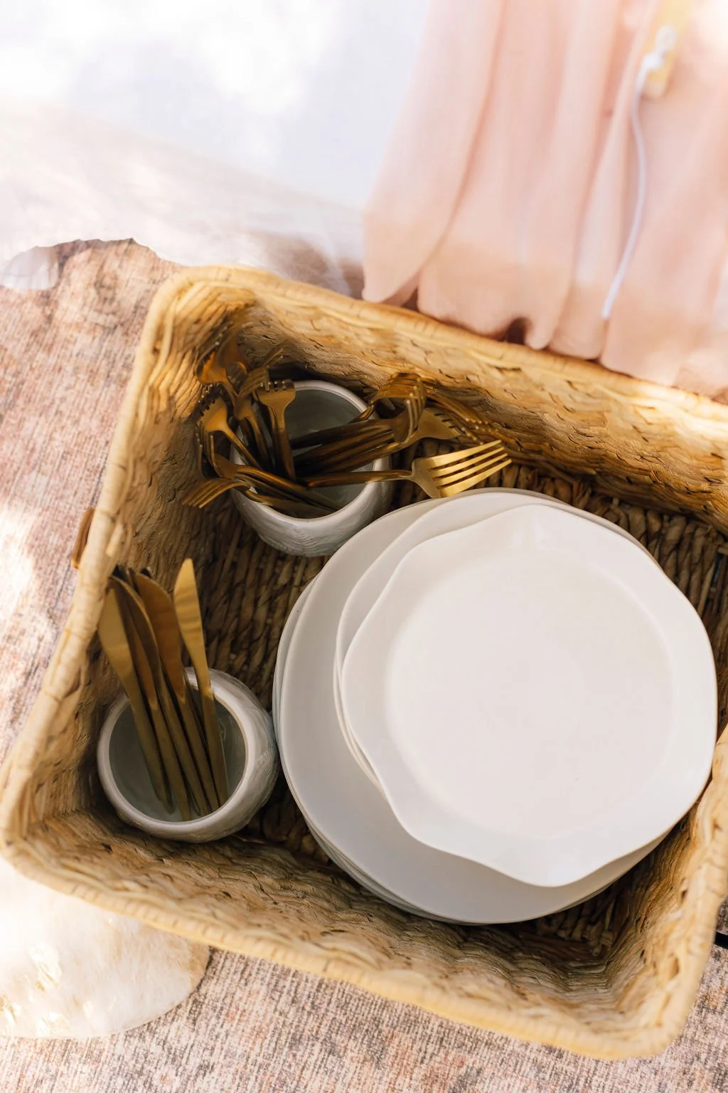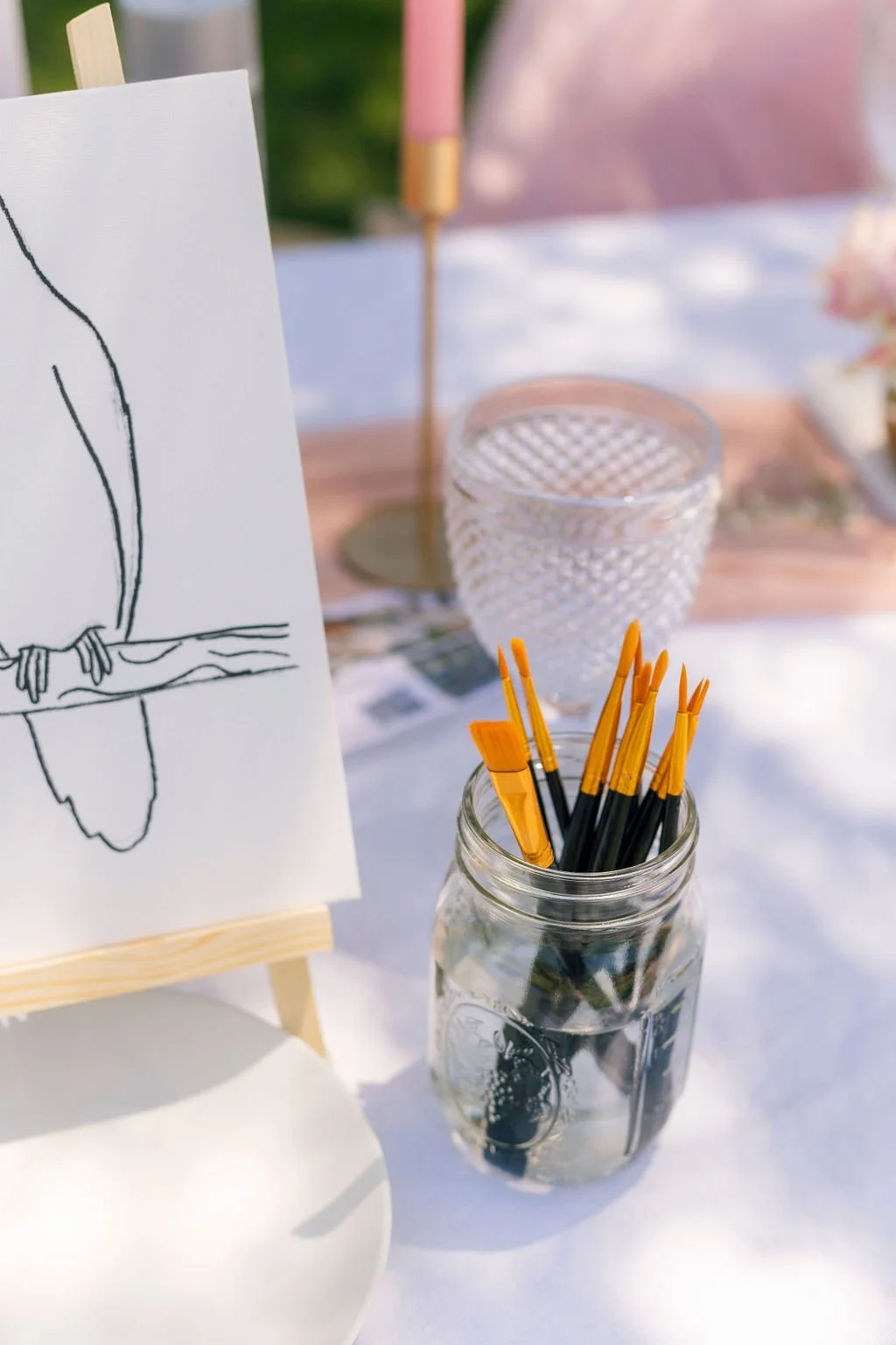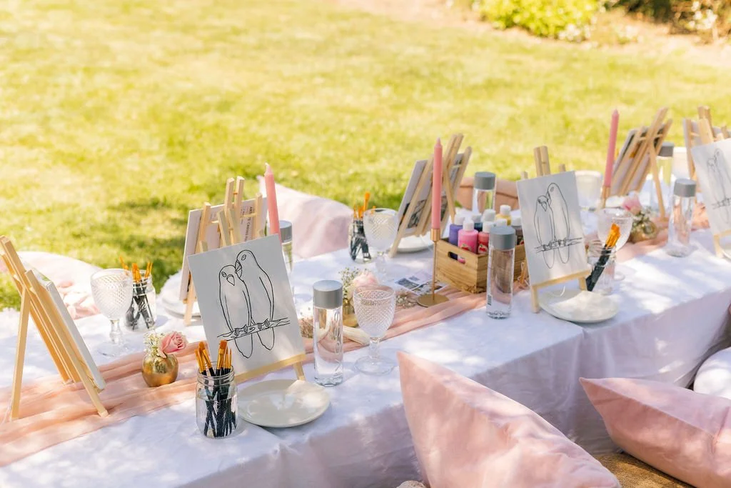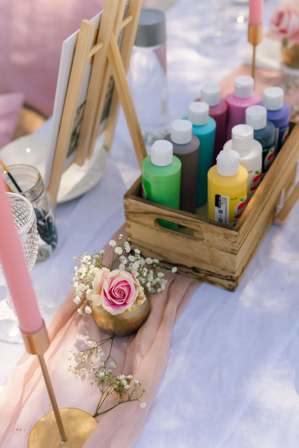 Painting materials will be set out first. You still receive everything that is included along with your luxury picnic. We simply set aside the place settings to allow space for the painting materials, allowing you to grab whatever you may need for food once you are done painting your beautiful masterpiece. This allows the paint to dry by the time your picnic is done!