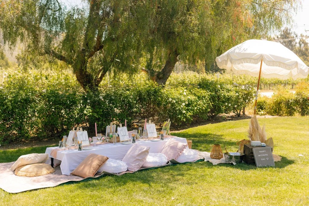 Your Picnic includes 1 Voss waters per guest. We suggest hosting at a winery to include bottles of wine through the winery. Other drinks or alcohol is not included, but can be added at extra costs.
